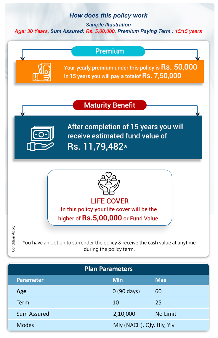 Regular Premium Unit Linked Plan with benefits of Insurance and Investment.
