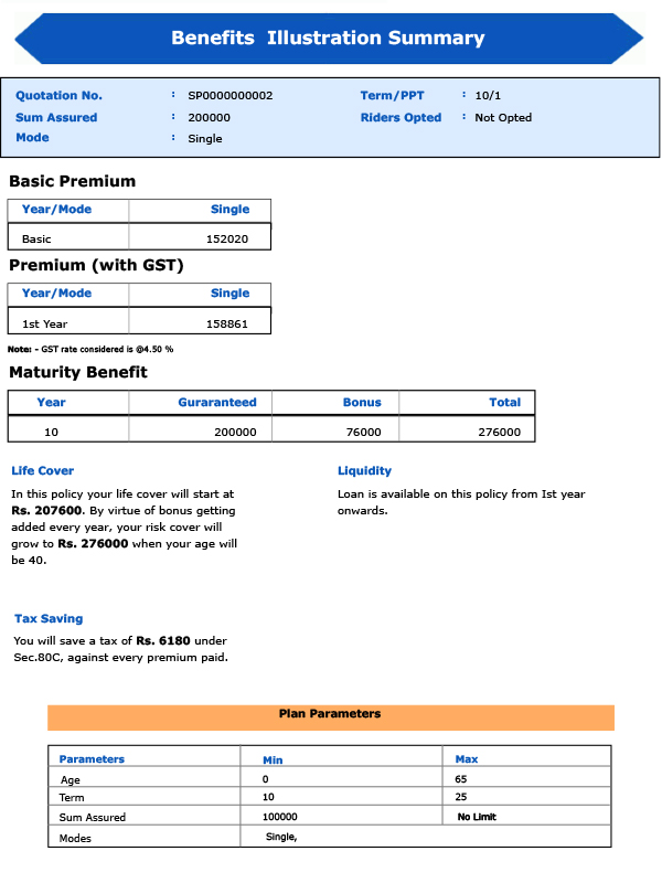 • Only the Single Premium will be paid to the nominee if the Life Insured dies before the commencement of risk.