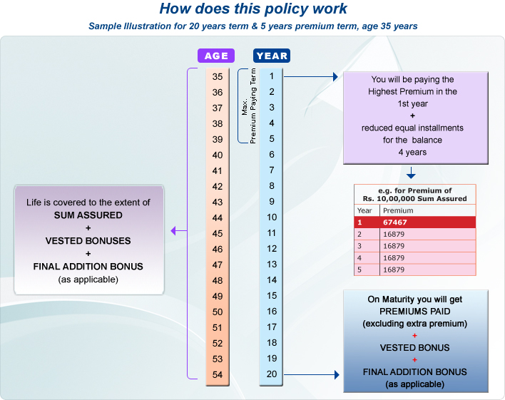 • MATURITY: On Maturity you will get Sum Assured + Vested bonus + Final Addition Bonus (as applicable)