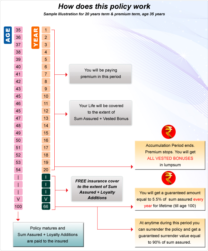 Thereafter every year a guaranteed amount equal to 5.5% of the sum assured is payable for the lifetime.